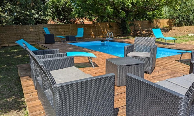 Les escales Périgourdines, Laura, 3 étoiles offers accommodations in Trémolat, 21 miles from Bergerac Train Station and 29 miles from Sarlat-la-Canéda Train Station. This property offers access to a terrace and free private parking. Domaine de la Marterie Golf Course is 13 miles from the vacation home and Château Les Merles Golf Course is 13 miles away. With free Wifi, this 3-bedroom vacation home provides a flat-screen TV, a washing machine, and a fully equipped kitchen with a dishwasher and oven. The air-conditioned unit at the property features a walk-in shower and a dressing room. The property has an outdoor dining area. Guests can enjoy the outdoor swimming pool and garden at the vacation home. Lascaux is 31 miles from Les escales Périgourdines, Laura, 3 étoiles, while Gouffre de Proumeyssac is 8.2 miles away. Bergerac Dordogne Périgord Airport is 21 miles from the property.