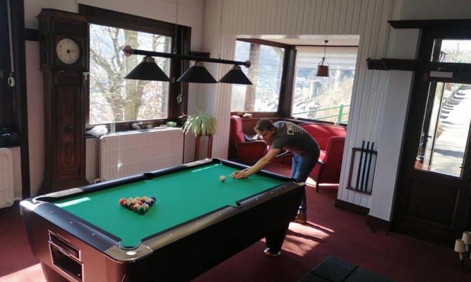 Featuring a garden, Les Genêts offers accommodations in La-Roche-en-Ardenne. With free private parking, the property is 27 miles from Plopsa Coo and a 5-minute walk from The Feudal Castle. Adventure Valley Durbuy is 19 miles away and Waterfalls of Coo is 26 miles from the vacation home. Offering a terrace and river views, the vacation home includes 12 bedrooms, a living room, cable flat-screen TV, an equipped kitchen, and 8 bathrooms with a bath and a shower. Guests can enjoy a meal on an outdoor dining area while overlooking the garden views. Additional in-room amenities include wine or champagne. There is an on-site bar, and during warmer months you can make use of the barbecue facilities. Barvaux is 17 miles from the vacation home, while The Labyrinth of Barvaux-sur-Ourthe is 18 miles from the property. Liege Airport is 52 miles away.