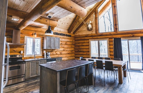 Built in 2019, this new modern log cabin is located only 5 minutes away from Le Massif du Sud's ski resort. Capable of welcoming 18 to 20 people, the cabin is the perfect location for a family reunion, a ski trip, a corporate retreat, to celebrate a special occasion, or to make the most of your weekend with your friends!