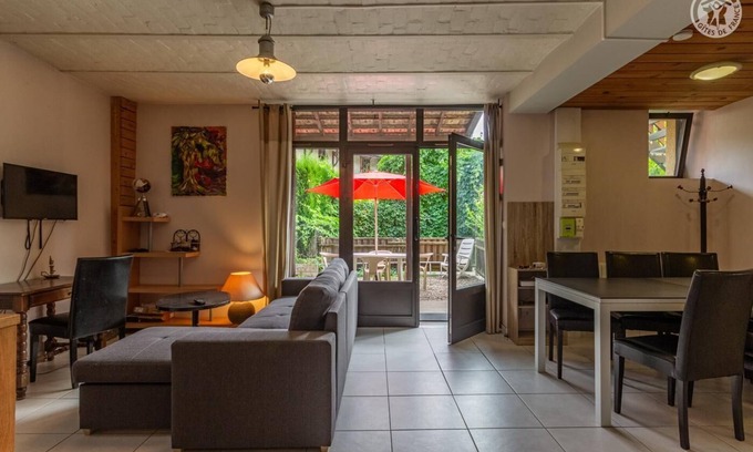 Gite on the ground floor comprising a living room-kitchen lounge area (sofa bed for 2 people), 2 bedrooms (1 double bed 140x190 cm / 1 double bed 160x200 cm), a bathroom (shower with WC). Gravel terrace. Private parking for 1 car. House comprising a year-round rental upstairs and adjoining the owner's son's accommodation, overlooking a shared courtyard. Small local shops 300m away (bakery). Comfortable cottage with a beautiful living room opening onto the gravel terrace.
