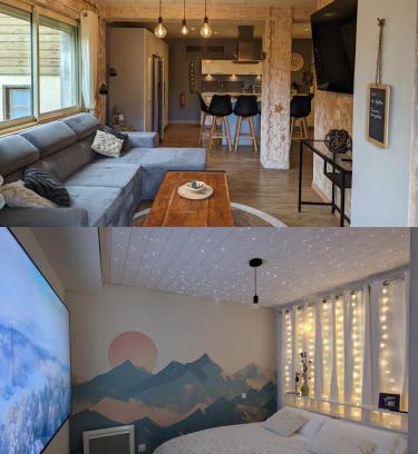 Food & DrinkTea/Coffee maker, Bottle of waterBathroomBathtub or shower, Bathtub, Hairdryer, Toilet, Spa tub, Private bathroom, Slippers, Body soap, Towels, Toilet paper, Shampoo, ShowerMedia & TechnologyStreaming service (like Netflix), Flat-screen TV, TVActivitiesHot tubGeneralFire extinguisher, Hardwood or parquet floors, Ironing facilities, Private entrance, Heating, Iron, Trash cansKitchenWine glasses, Cleaning products, High chair, Dryer, Stovetop, Dishwasher, Kitchenware, Electric kettle, Oven, Toaster, Coffee machine, Dining table, Microwave, Kitchen, Refrigerator, Washing machineLiving AreaDining area, Sitting area, SofaViewGarden view, Mountain view, ViewBedroomLinens, Childrens' cribs, Wardrobe or closetOutdoorsOutdoor dining area, Outdoor furniture, TerraceBuilding CharacteristicsSemi-detached, Private apartment in buildingRoom AmenitiesSofa bed, Socket near the bed, Drying rack for clothing, Non-feather pillowEntertainment & Family ServicesBoard games/puzzles, Books, DVDs or music for children |