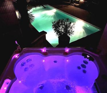 Les palmiers des causses is located in Saint-Rome-de-Tarn, just 13 miles from Millau Train Station and 20 miles from Millau Bridge. This 3-star vacation home offers a spa experience, with its hot tub and spa facilities. There's a sun terrace and guests have access to free Wifi, free private parking, and an electric vehicle charging station. The air-conditioned vacation home consists of 2 bedrooms, a living room, a fully equipped kitchen with a dishwasher and a coffee machine, and 2 bathrooms with a walk-in shower and a hot tub. Guests can take in the views of the mountain from the patio, which also has outdoor furniture. For added privacy, the accommodation features a private entrance. Guests can swim in the pool with a view, and go hiking or walking tours. Sylvanes Abbey is 24 miles from the vacation home, while Roquefort-sur-Soulzon is 10 miles away. Rodez - Aveyron Airport is 45 miles from the property.