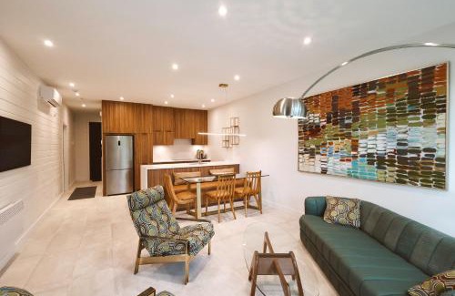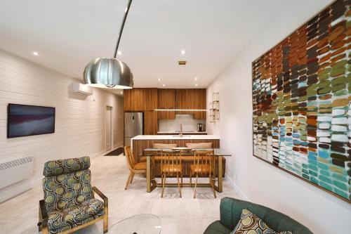 31 miles from Foresta Lumina in Orford, Les Repères - Condos offers accommodations with access to spa facilities. 2.8 miles from Marais de la Riviere aux Cerises and 19 miles from Université de Sherbrooke Stadium, the property provides a terrace and barbecue facilities. The apartment features rooms with air conditioning, free private parking, and free Wifi. Each unit features a balcony, a fully equipped kitchen with a dishwasher, a dining area, and a seating area with a flat-screen TV, while the private bathroom includes a hot tub. An oven, a microwave, and toaster are also available, as well as a coffee machine and a kettle. The rooms are equipped with heating facilities. Guests at the apartment can enjoy skiing nearby, or make the most of the seasonal outdoor pool. Cégep de Sherbrooke is 21 miles from Les Repères - Condos, while Club de Golf du Vieux Village is 26 miles from the property. The nearest airport is Montréal/Saint-Hubert Airport, 69 miles from the accommodation.
