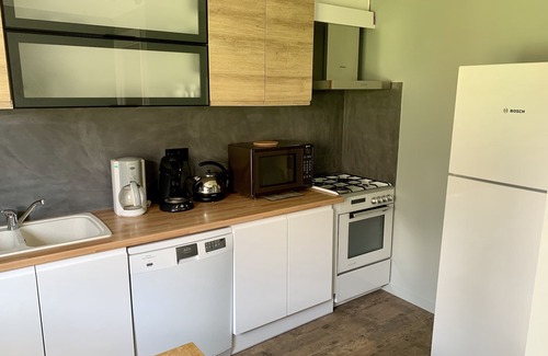 This 2-bedroom, 1-bathroom rental features a living room, a dining area, a BBQ grill, and a desk. The kitchen is equipped with an oven, a stovetop, and a refrigerator, as well as a coffee maker, an electric kettle, and a microwave. And because there's access to laundry facilities, you can go a bit lighter on your packing.
