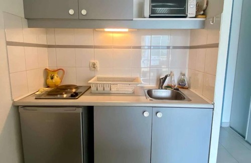 • Kitchenette équipée : plaques, micro-ondes, réfrigérateur, cafetière à filtre, vaisselle