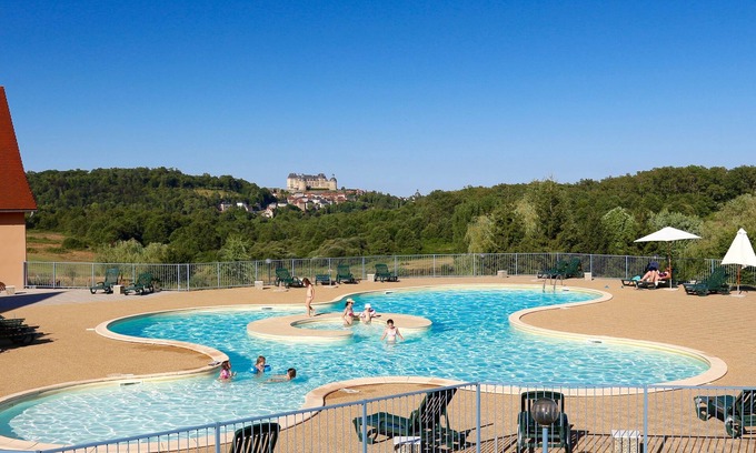 Les SOURCES "Pink Lady" VIP terrace, SPA, swimming pool, fishing pond, playground is located in Hautefort. Les SOURCES "Pink Lady" VIP terrace, SPA, swimming pool, fishing pond, playground provides accommodation, featuring Pool, Designated Smoking Area, Sports/Activities, among other amenities. This Cottage features Pool, Designated Smoking Area, Sports/Activities, to make your stay a comfortable one.