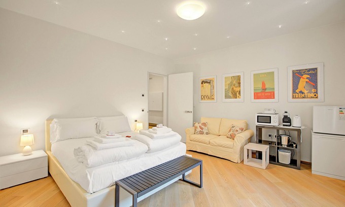 A luxurious experience awaits at this chic and modern holiday suite, with the waterfront of Riva del Garda right at the foot of its residence building!