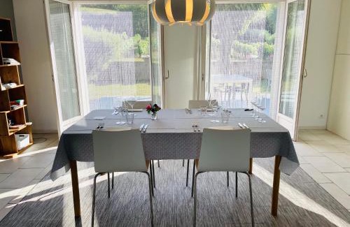 Providing a garden, Les Vignes de Paris provides accommodations in Paris-lʼHôpital. This vacation home offers free private parking, bicycle parking, and free Wifi. Outdoor seating is also available at the vacation home. With direct access to a patio with garden views, the spacious vacation home consists of 2 bedrooms. Offering a terrace with mountain views, this vacation home also has a satellite flat-screen TV, a well-equipped kitchen with a dishwasher, an oven, and a microwave, as well as 1 bathroom with a walk-in shower and a hair dryer. There's also a seating area and a fireplace. Guests can make the most of the warm weather with the property's barbecue facilities. Hospices Civils de Beaune is 15 miles from Les Vignes de Paris, while Beaune Train Station is 15 miles away. Dole-Jura Airport is 54 miles from the property.