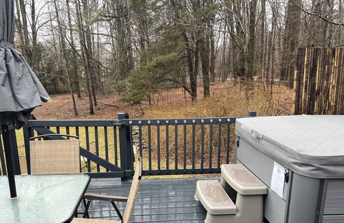 Ideal for2-3 people but can sleep 6. Great lighting and the views of Mohawk Ski Area night skiing are a real treat. From the cozy inside to the back deck with hot tub to the burn pit, you have everything you need for a relaxing stay.