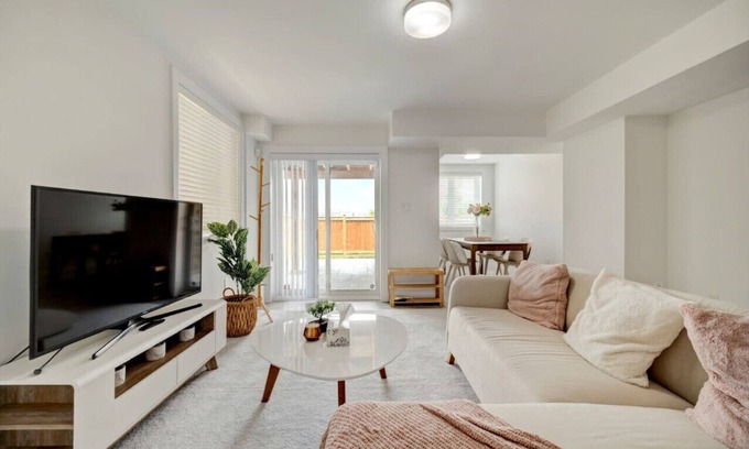 Welcome to the Beam of Light! A cozy basement apartment in charming Milton. Stylish decor, fully-equipped kitchen, comfy bedroom, office and refreshing bathroom. We have designed it to maximize natural light and airflow, ensuring a pleasant and comfortable environment throughout your stay. The tranquility of a private and intimate setting, perfect for solo travelers or couples seeking a quiet getaway. Amenities include WiFi, AC, and washer/dryer. Friendly 24/7 support. Book your stay and unwind!