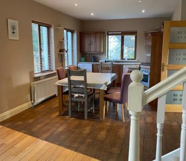 Providing a terrace, Letterfrack Farm Lodge house in Letterfrack village Connemara provides accommodations in Letterfrack. This property offers access to a patio, free private parking, and free Wifi. Outdoor seating is also available at the vacation home. The vacation home consists of 4 bedrooms, a living room, a fully equipped kitchen with a dishwasher and a coffee machine, and 3 bathrooms with a bath and a shower. Towels and bed linen are featured in the vacation home. There's also a seating area and a fireplace. There is an on-site restaurant, but if you'd rather cook your own food you can make use of the barbecue facilities and eat in the private dining area. The area is popular for snorkeling and cycling, and bike rental is available at this 4-star vacation home. Guests at Letterfrack Farm Lodge house in Letterfrack village Connemara can enjoy hiking and walking tours nearby, or make the most of the garden. Kylemore Abbey is 2.9 miles from the accommodation, while Alcock & Brown Memorial is 12 miles away. Ireland West Knock Airport is 65 miles from the property.