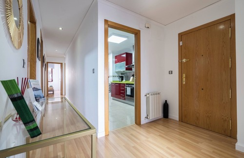 It has 3 bedrooms for 6 people, viscoelastic mattresses, built-in wardrobes, a living room with views, a 65-inch 4K TV with Netflix, a motorized sofa, 2 full bathrooms, and an equipped kitchen.