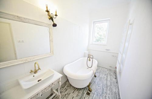 Featuring a garden, Levendula ház - Rosie Home features accommodations in Balatonlelle. This property offers access to a terrace, free private parking, and free Wifi. Napfény Beach is a 16-minute walk away and Szabadstrand is 1.3 miles from the vacation home. The vacation home consists of 4 bedrooms, a living room, a fully equipped kitchen with an oven and a coffee machine, and 2 bathrooms with a bath. Towels and bed linen are available in the vacation home. The property has an outdoor dining area. During warmer months, you can make use of the barbecue facilities and eat on the private balcony. Bella Stables and Animal Park is 28 miles from the vacation home, while Zamardi Adventure Park is 18 miles from the property.