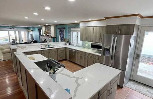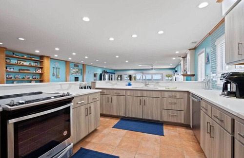 Lakefront Home on Beautiful Sandy Beach. Home has 6 bdrms & 3 bathrooms. Library has a hideaway sofa & travel crib. Livingroom sofa also equipped w/hideaway bed. Bdrm w/2 bunkbeds & twin bed adjoined to bdrm w/a queenbed! Full office & library on the 2nd floor. Home has space to sleep 20. New vanities & quartz counters in all 3 bathrooms. New light fixtures w/LED lights added throughout. New flooring in downstairs bdrm & master! New stackable washer/dryer