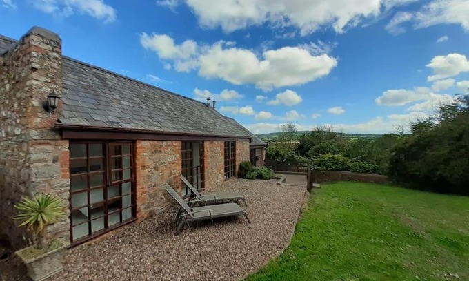 Light & Airy Vaulted Barn Conversion with a View is located in Sampford Arundel.