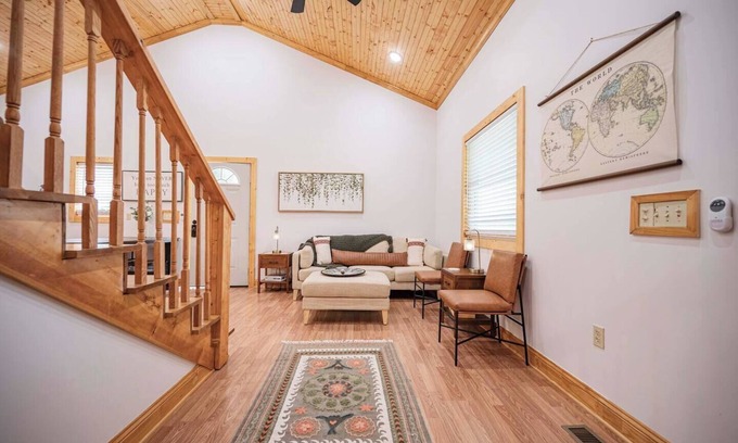 Light and Bright Cabin with open floor plan and loft minutes from Pates Ford Marina has 2 Bedrooms , 2 Bathrooms, and max occupancy of 4 people. The minimum rental for this property is 1 nights, but this can change depending on the season you plan on staying. Previous guests have given good rated it, and VRBO labeled it a top-rated House because of the excellent services rendered by the owner or manager of this House, and has consistently provided great experiences for their guests. Most families or guests that use it recommend it to their friends and some of them are repeat guests. House has a friendly neighborhood, and the Smithville has interesting places to visit. If you want to learn more about the House in Smithville, such as places to visit and things to do nearby, you can check below to learn more.