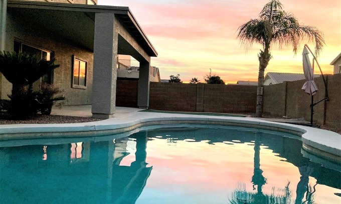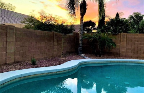 Welcome to Goodyear! EST in 1917 when Goodyear tire bought 16,000 acres! This is our new to us home and we love it so I think you will too! It has a HEATED pool for summer in January! It's ready for spring training, Nascar races, and always GOLF! Has Cable with the sports package. Shuffle board, did I mention a heated pool :) Tons of entertainment within 15 minutes! PS. Pool heat is Included in the cost!