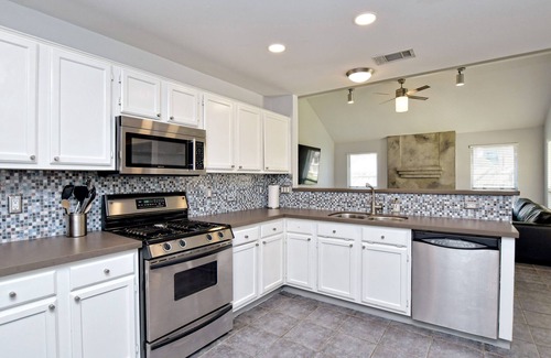 Well-appointed home with modern amenities in a peaceful neighborhood. Located close to highly rated restaurants, high-end grocery stores and other local attractions, including Lake Travis, H-E-B Center, The Domain and the Austin Arboretum. Smart TVs in every bedroom are powered by fast, strong WiFi to ensure consistent connectivity for all guests. The home office provides ample, private work space while the bedrooms feature plush linens and bedding. The open concept living areas include tasteful decor and modern appliances. The large backyard is perfect for pets and families seeking outdoor space.