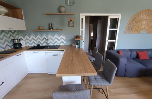 Light-filled apartment with breathtaking views is located in Aigues-Mortes. Light-filled apartment with breathtaking views provides accommodation, featuring Kitchen, Laundry, TV, among other amenities. This Apartment features Kitchen, Laundry, TV, to make your stay a comfortable one.