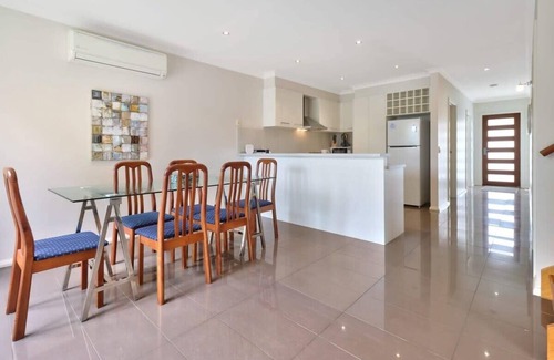 A 3-bedroom townhouse located in the heart of Geelong, adjacent from the GMHBA Stadium, 15 min walk for South Geelong Station and a 7 min drive into the CBD. With double garage access, Free Wifi, 3 bedrooms , this home is perfectly set up for a business or family base whilst you visit Geelong and surrounds, whether It be for a week or a few months.