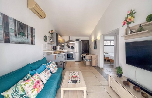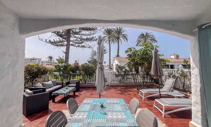 Fully equipped bungalow with a large terrace next to the pool in the best area of Playa del Inglés.The property consists of two bedrooms, one with a double bed and the other with two single beds, a full bathroom, a fully equipped kitchen-living room, and terrace furniture to enjoy breakfast or an aperitif outdoors.The bungalow is fully equipped; we offer maximum speed Wi-Fi, flat screen TV in the living room, washing machine and air conditioning. The kitchen has complete kitchenware and small appliances such as a toaster, water heater, juicer, oven and dishwasher. The bathroom is spacious and comfortable, with an easily accessible shower, screen, hair dryer, ironing board and iron. The accommodation provides bed linen and towels. All the necessary elements to enjoy an enjoyable stay with a separate terrace, comfortable sun loungers, and more amenities will make the guest enjoy a wonderful stay in Gran Canaria.The property is entirely private; it is located in a very quiet bungalow complex where the pools are communal.Playa del Inglés is a world-famous tourist area visited by millions of travellers annually. The property is located about 200 meters from the well-known Yumbo shopping centre. Visitors enjoy the famous Dunes, and a kilometres-long golden sandy beach, rich and varied local and international cuisine and all the services you can imagine, such as supermarkets, cafes, nightlife, pharmacies, health centre, etc. ..... The privileged climate with an average temperature of 22º makes it possible to enjoy the sun and the beach all year round. The GC1 freeway connects this enclave with the airport and the island's capital, Las Palmas de GC, the largest of the Canary archipelago. A city with more than 500 years of history that you should not miss. The privileged location, the apartment's equipment, the privileged climate and the services the area offers are compelling reasons to choose this property to enjoy a great stay in Playa del Inglés.In the vicinity of the accommodation you can move on foot, you have everything very close if you want to go out to know the island, the bus service is excellent, there is a station within walking distance if you ask us we can leave you all the schedules and we can help you with recommendations. If you drive without a doubt the best option is to rent a car, which we can also arrange, the prices are excellent.