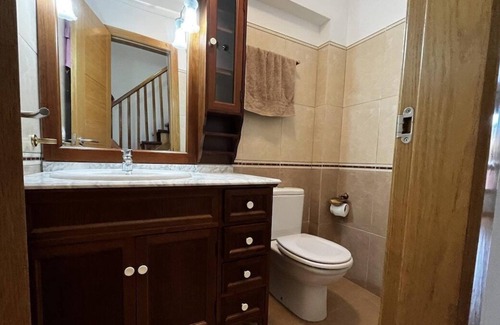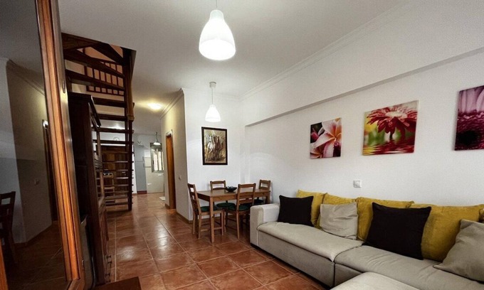 Semi-detached house on two levels fully equipped with all the comforts and services necessary to enjoy a wonderful stay in Gran Canaria. It has a large living room, kitchen and toilet on the ground floor and three bedrooms with a full bathroom on the upper floor. Capacity for five people.