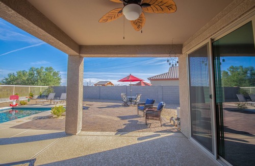 Newer home in excellent condition located on a quiet Cul de sac, fully stocked with a private pool, an amazing backyard for you and your family. With a close proximity to shopping. 30 minutes to Phoenix Sky harbor Airport. 5 minutes to I-10. 20 minutes to Goodyear. Close proximity to many prestigious golf courses. 20 minutes to Glendale home of 2023 Super Bowl at State Farm Stadium. Close to White Tank mountains and tons of hiking options. Extra per night to heat the pool. (Sorry No pets, no smoking, no large gatherings)