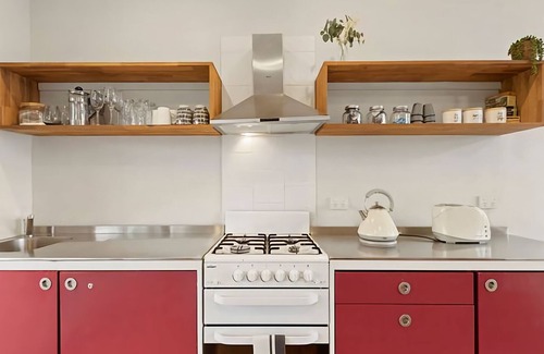 This classic little beach house provides a perfect couples getaway or affordable family holiday. From the house walk 5 minutes one way to the nearest swimming bay or 5 minutes the other way to a boat ramp and cafe. There's a decent sized yard and covered deck for furry friends.The SpaceThough very modest in size this house is cute, clean, cosy and colourful!