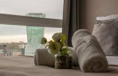 Food & DrinkChocolate/Cookies, Tea/Coffee maker, Bottle of waterBathroomTowels, Toilet paper, Free toiletries, Bathtub or shower, Hairdryer, Body soap, Bathtub, Private bathroom, Shampoo, ToiletMedia & TechnologyFlat-screen TV, Satellite channels, Cable channels, TV, Streaming service (like Netflix)GeneralFan, Private entrance, Ironing facilities, Heating, Smoke Alarm, Iron, Hardwood or parquet floors, Trash cansKitchenKitchenware, Washing machine, Microwave, Wine glasses, Electric kettle, Toaster, Kitchen, Coffee machine, Dining table, Refrigerator, Stovetop, Cleaning productsLiving AreaDining area, Sitting area, Desk, SofaViewQuiet street view, Landmark view, View, City viewBedroomLinens, Wardrobe or closetAccessibilityAccessible by elevator, Upper floors accessible by elevator, Entire unit wheelchair accessibleBuilding CharacteristicsPrivate apartment in building, Semi-detachedRoom AmenitiesAdapter, Clothes rack, Sofa bed, Non-feather pillow, Hypoallergenic pillow, Socket near the bed, Drying rack for clothingCleanliness & disinfectionHand sanitizer |
