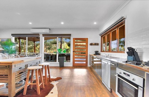 Complemented by a bar and bi-fold serving windows opening out from the kitchen, you could cook up a storm or serve guests beverages while taking in the peaceful views.