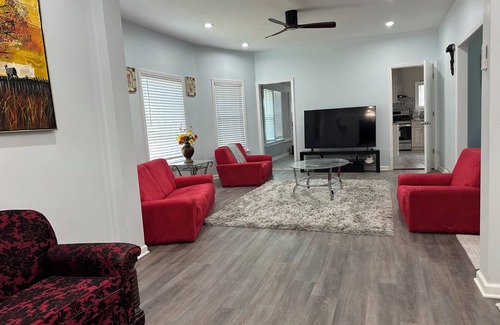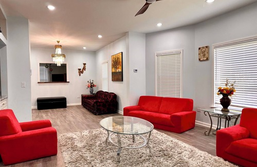 Fully remodeled and furnished four bedroom house not too far from anything! Shopping, restaurants, and fun are all within 10-15 minutes ride.
