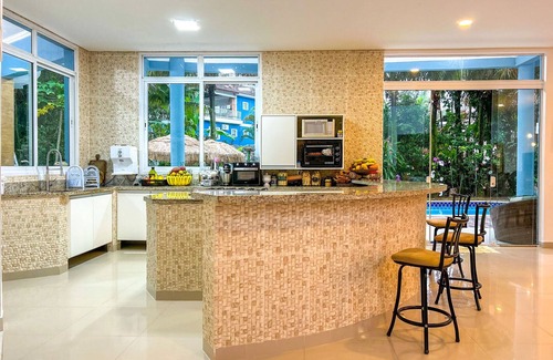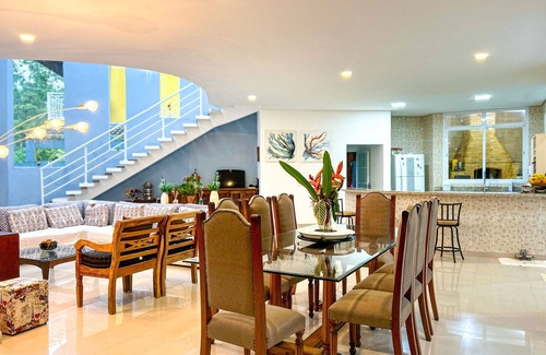 Nestled in Bertioga, this 5-bedroom, 5.5-bathroom vacation home brings it all within your reach. Fans of nature and the outdoors will love being 8 minutes by foot from Guaratuba Beach and 5 minutes by car from Boraceia Beach. You'll easily make the 23-minute drive to Praia de São Lourenco or the 32-minute drive to Juquehy Beach.