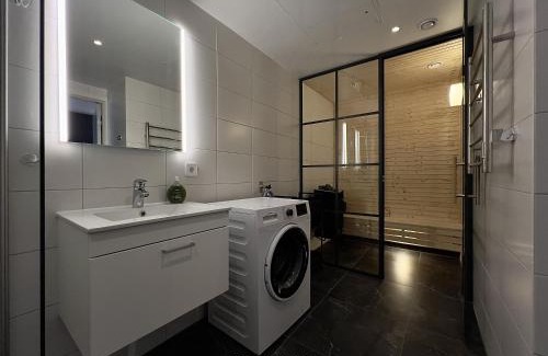 BathroomShower, Toilet paper, Toilet, Hairdryer, Private bathroomGeneralAir conditioning, Key access, Fire extinguisher, Heating, Private entrance, Smoke AlarmOutdoorsBalcony, Outdoor dining area, Outdoor furnitureKitchenRefrigerator, Dining table, Dryer, Cleaning products, Stovetop, Microwave, Washing machine, Kitchen, Oven, Toaster, Electric kettle, Coffee machine, DishwasherLiving AreaSofa, Fireplace, Dining areaMedia & TechnologyFlat-screen TVViewViewActivitiesSaunaBedroomWardrobe or closet, Childrens' cribsAccessibilityUpper floors accessible by stairs onlyBuilding CharacteristicsPrivate apartment in buildingRoom AmenitiesSocket near the bed, Sofa bedPool and SpaPool cover, Heated pool |