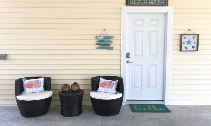 Linens included - Studio apt with bikes & fire pit, walk to beach! is located in Tranquil Harbour. Linens included - Studio apt with bikes & fire pit, walk to beach! provides accommodation, featuring TV, Balcony/Terrace, Fireplace/Heating, among other amenities. This House features TV, Balcony/Terrace, Fireplace/Heating, to make your stay a comfortable one.
