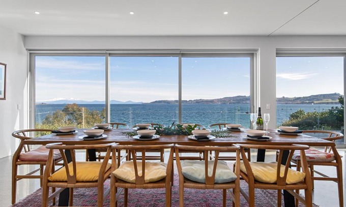 24 miles from Orakei Korako Cave and Thermal Park in Taupo, Linger Lakeside provides accommodations with access to a hot tub. This beachfront property offers access to a balcony, free private parking, and free Wifi. Outdoor seating is also available at the villa. Providing a terrace and mountain views, the spacious villa includes 5 bedrooms, a living room, satellite flat-screen TV, an equipped kitchen, and 5 bathrooms with a walk-in shower and a hot tub. Towels and bed linen are provided in the villa. For added privacy, the accommodation features a private entrance. During warmer months, you can make use of the barbecue facilities and eat on the private patio. Guests can relax in the garden at the property. The Hidden Valley is 24 miles from Linger Lakeside, while Great Lake Convention Centre is 1.6 miles away. Taupo Airport is 3.7 miles from the property.