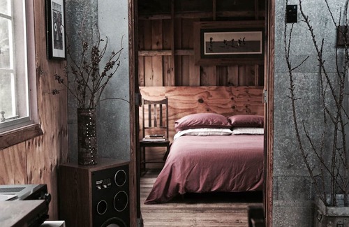 It is a large shack built by hand from recycled timber and tin. Set on five acres, it is surrounded on all sides by bush land, with distant views across neighbouring farm land. You can't see another building, so it is very private, and there is lots of wildlife.