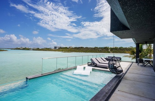 Discover Liquid Villa East, your own private oceanfront sanctuary on the shores of Chalk Sound, Turks & Caicos. This stunning architectural villa offers four ocean-view bedrooms, four-and-a-half bathrooms, two private pools, and a rooftop lounge with panoramic turquoise views — the perfect escape for VIP travelers seeking privacy, style, and a one-of-a-kind luxury experience.