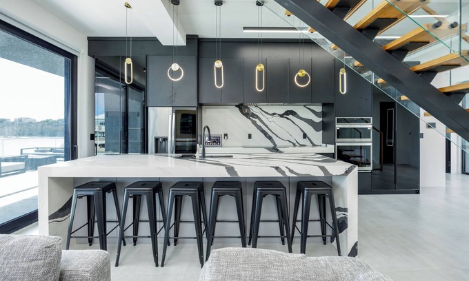 From the moment you step through the gated entrance and private driveway, Liquid Villa East feels like your own boutique resort. Floor-to-ceiling glass walls flood the villa with natural light and frame Chalk Sound’s vibrant blue waters, creating a backdrop as striking as the villa’s design itself.