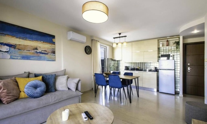 Enjoy the comfort of our cozy apartment, a serene space equipped with modern amenities. Inside, enjoy a climate-controlled environment, a fully equipped kitchen , and a snug living area with a flat-screen TV for your entertainment. The private bathroom, stocked with essentials, promises a refreshing start and end to your day. Step out onto the dedicated balcony to enjoy the unique city view. Here, every detail is in place for a warm and memorable stay.