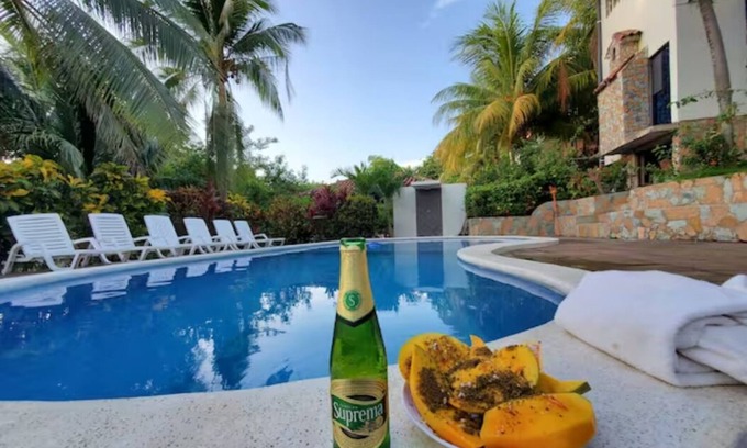 GeneralNumber of living rooms 0, Bed count minimum 9, Full-sized refrigerator/freezer, Microwave, Shower only, Stovetop, Air conditioning, Number of bathrooms - 2, Private pool, Cookware, dishware, and utensils, Private bathroom, Deck or patio, Kitchen, Bed count maximum 9, Number of bedrooms - 3 |