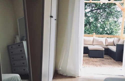 Α countryhouse 65m2 with a 400m2 garden only 50 minutes from Athens. It consists of two bedrooms with 2 big double beds (a small foldable single bed can be offered upon request) one bathroom, kitchen with all the electrical equipment (oven - fridge - microwave - toster - espresso machine - filter coffee - juicer) and everything else needed , a big living room , front balcony overlooking the beautiful garden and rear patio for your relaxation and reading. There is air conditioning off course and both bedrooms have ceiling fans. Also there is private space in front of the house for parking. It is located 40 meters from the sea and at approximately 400meters is a well known windsurfing and kite surfing spot. All the beach bars and organised beach is at a 5 to 7 minute walk (600 -650 meters away) Also the centre of the village of Chalkoutsi is at a 850 meters walk by the picturesque seaside paved road ( ideal for evening strolls) where you can find everything from restaurants and tavernas to cafes and supermarkets and an amazing summer movie theatre. Also a bicycle will be offered during your stay for ease with the groceries. The town of Oropos is 5km away where you can take the ferry ( half an hour trip) to the island of Evia and the small town of Eretria. Buses to Oropos and Athens from Chalkoutsi are leaving every hour. Bus stop is 850 meters from home. The placement of the house makes it perfect for relaxation and recharging while being close to everything you can ask.
