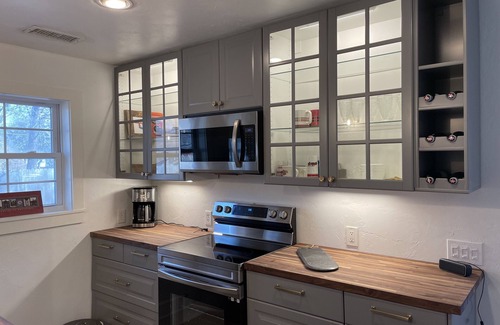 The “LCB” is tucked away on a quiet alley street just east of campus corner and easy walking distance to the stadium and campus, as well as the main street downtown and the Norman train station. This newly remodeled backhouse has a private, enclosed patio for small gatherings and outdoor dining. It is the perfect spot for all sports events, OU visits, reunions and weekday meetings. Abundant parking.