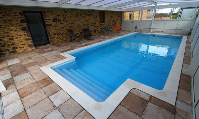 On the ground floor: a dining room with a kitchen, a large living room of 90 m² (small reception area) with direct access to the private heated and covered swimming pool under veranda (dim: 9m X 4m - depth of 1.20 m to 1.60 m) with sanitary area adapted for People with Reduced Mobility, a bedroom with a 160X200 bed and its private bathroom, a separate toilet. On the first floor: a bedroom with a 160X200 bed that can be converted into two 90X200 beds, its private bathroom and its separate private toilet, a bedroom with a 160X200 bed and two 90X200 bunk beds, its private bathroom and its separate private toilet. Parking on private parking. 17 km from Paimpont, this 15th-century manor house, listed as a Brittany heritage site, welcomes you to a lush setting on a large wooded property. Adjoining the owners' property, the gîte, fully renovated in 2022, offers spacious, well-appointed spaces, including beautiful bedrooms with private bathrooms. The authentic local stone architecture with exposed beams and generous volumes, combined with contemporary decor in soft tones, lends a refined ambiance to this characterful house, which has retained its finest period features (monumental fireplaces, staircase turret). 7.5 km away, the Domaine de Tremelin awaits you for sports and leisure activities: swimming and water sports on its lake (kayaking, canoeing, pedal boating), mini-golf, an equestrian center, and treetop adventure park.