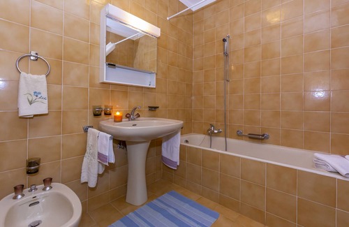 Bathroom: A retro-fitted suite with bath tub, shower tap, wash basin, WC & bidet
