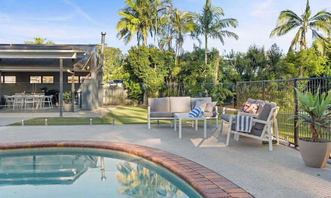 Set on half an acre in peaceful Little Mountain, this modern single-level home sleeps 8 and offers the perfect escape just 15 minutes from Caloundra’s best beaches. The spacious backyard includes a sparkling pool, trampoline, swing set, and play gym for family fun. Enjoy the Sunshine Coast lifestyle with a covered outdoor area featuring dining, a BBQ kitchen, and fireplace, plus a beautifully designed interior with 4 bedrooms, 2 bathrooms, high-spec kitchen and 2 lovely living areas to enjoy.