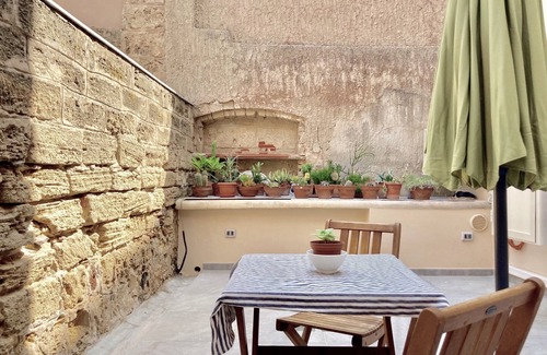 Nice little bright loft in the very centre of the ancient Catalan town of Alghero. It has been recently and totally renovated and everything is brand new. There's a nice bedroom with a double bed, a sofa, a fully equipped bathroom with shower and a fully furnished kitchen, with washing machine, dishwasher, tv. Air conditioning/drying/heating system available. The apartment has a terrace where one can eat on open air facing a nice garden. It is in a strategic position, close to all facilities, bars, clubs, supermarkets and restaurants and has lots of parking areas in the surroundings. You can reach the first beach in town by bus in 10 minutes. It is on a first floor and has an indipendent entrance and is mostly quiet. The position is really worthy if you really want to take advantage of staying in the centre and live the real life of the town and you can choose in between a very relaxed holiday or the real clubber life. A tourist tax is required by the local government and will be collected at your arrival at the house. You should kindly pay €1,00 per person per night up to seven nights. In October the tax is reduced by 50%.