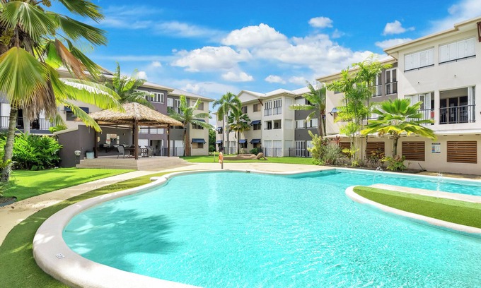 Discover Little Palm, where laidback, tropical living meets convenience. Relax under the shaded gazebos by the resort pool, make use of the shared BBQ facilities, or dine al fresco on your private balcony overlooking the pool. Two bedrooms both offer their own bathroom, while split-system cooling keeps you comfortable year-round. You’ll be a short stroll from the local cafes and Piccone’s Shopping Village, with the CBD just a 10-minute drive away.
