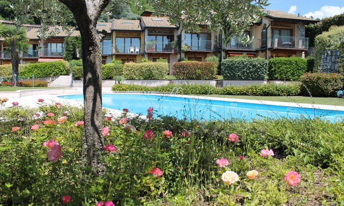 This lovely little terraced house on the hills above Salò is part of a peaceful residence with a great swimming pool and surrounded by a luxuriant vegetation.