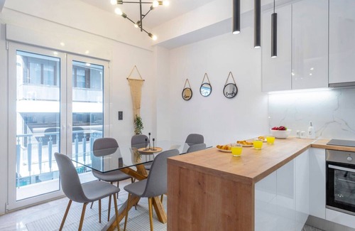 Discover a stylish urban retreat in the heart of Kolonaki, Athens, with this modern 3-bedroom apartment perfect for families, couples, and friend groups. The spacious 90 square meter flat offers a comfortable and contemporary living experience with all the amenities you need for a memorable stay.The apartment features three well-appointed bedrooms, including one double bed and three individual beds, ensuring flexible sleeping arrangements for up to 5 guests. Two modern bathrooms with shower facilities provide convenience and privacy for all occupants.The fully equipped American-style kitchen is a highlight, featuring state-of-the-art appliances including a glass-ceramic hotplate, fridge, freezer, oven, microwave, dishwasher, coffee machine, juicer, toaster, and kettle. Complete kitchenware and dishes are provided, making meal preparation a breeze.Stay connected with complimentary WiFi and enjoy entertainment on the flat-screen TV. The apartment is fully air-conditioned, ensuring comfort during Athens' warm summers. A convenient balcony offers a perfect spot to relax and enjoy the city views.Additional amenities include an iron, making it ideal for business travelers or those wanting to look their best. The property is non-smoking and does not allow pets, ensuring a clean and comfortable environment for all guests.Located in the prestigious Kolonaki neighborhood, this apartment offers a perfect base for exploring Athens' vibrant culture, shopping, and dining scenes. Whether you're travelling for business, with family, or with friends, this modern flat provides a comfortable and stylish home away from home.