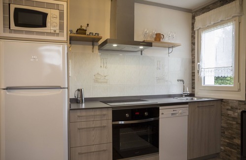 It is a two-storey house with capacity for 5 people. On the first floor it has four rooms, three of them single and one double; a spacious bathroom, kitchen-living room with fireplace fully equipped with dishwasher and microwave. The ground floor is a txoko that has a toilet and has table football, projector and games for children of different ages, garden furniture and barbecue.